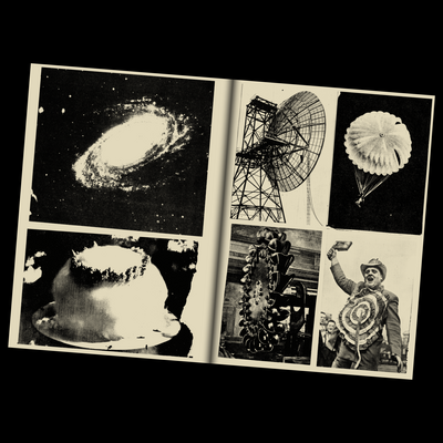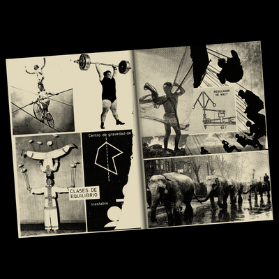 Collages realizados con enciclopedias encontradas. Un incentivo de ejercitación constante, el reconocimiento de relaciones posibles que puedan establecerse en el mundo bajo un principio de belleza y profundidad conectora entre lo múltiple y en apariencia dispar.